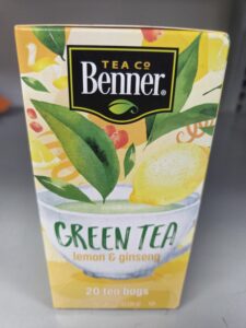 Benner Green tea lemon & ginseng 20 tea bags Net 1.27oz B.B 2/9/ 25